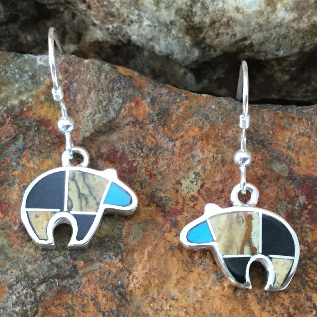 David Rosales Turquoise Creek Inlaid Sterling Silver Earrings Bears
