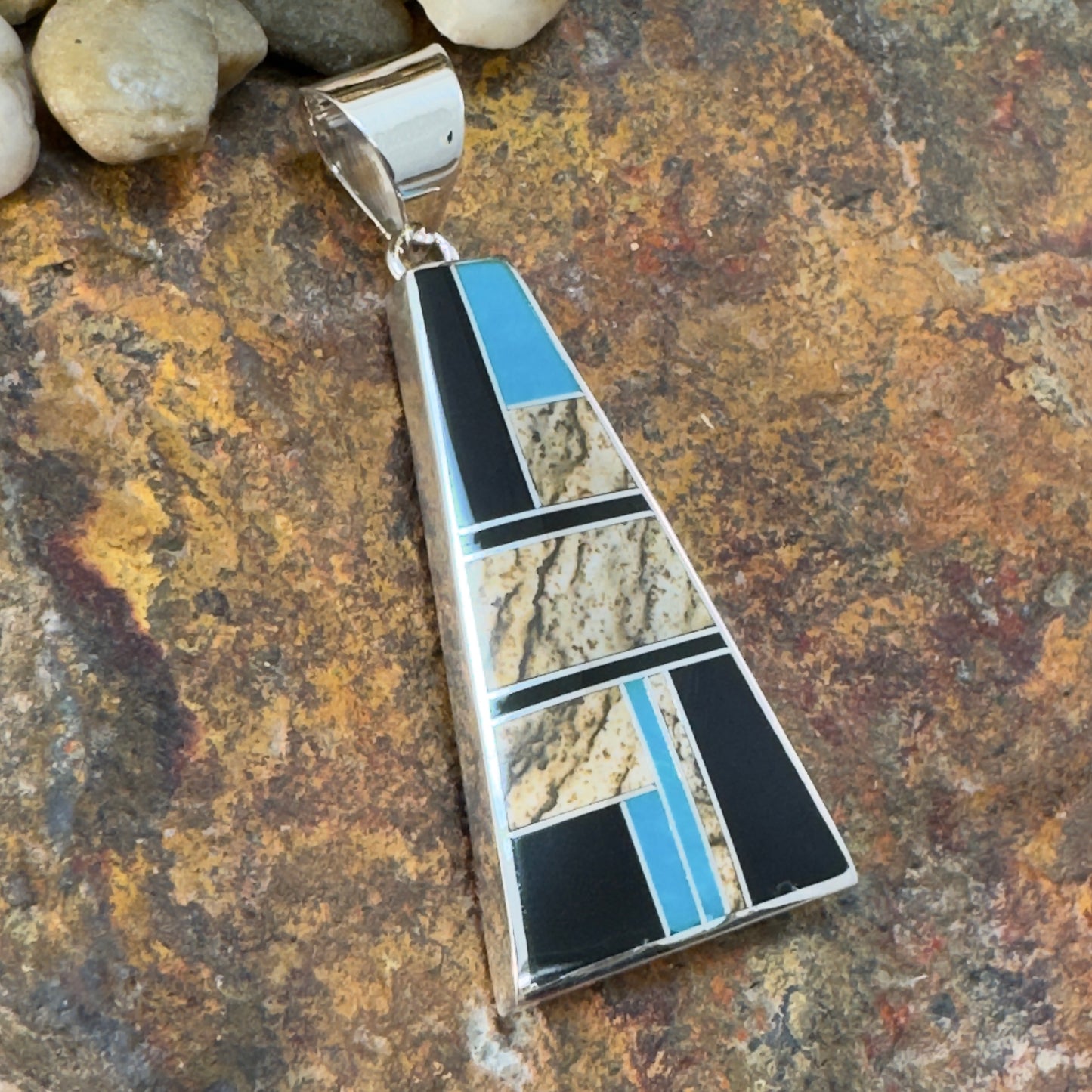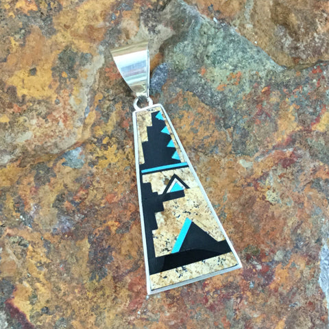 David Rosales Turquoise Creek Inlaid Sterling Silver Pendant