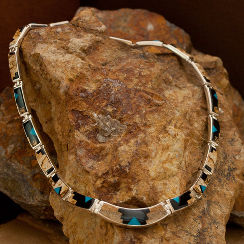 David Rosales Turquoise Creek Inlaid Sterling Silver Necklace