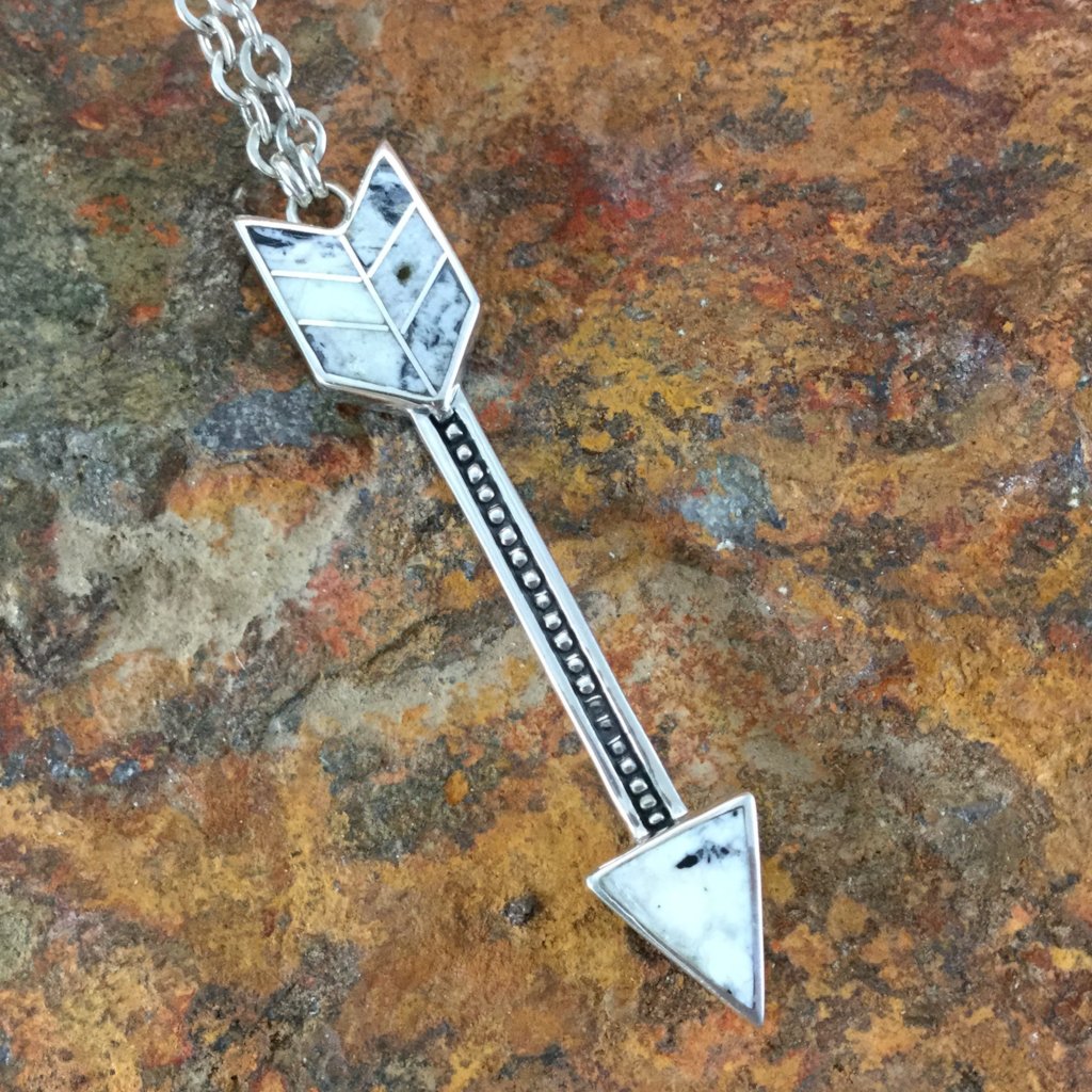 David Rosales White Buffalo Inlaid Sterling Necklace Pendant Arrow