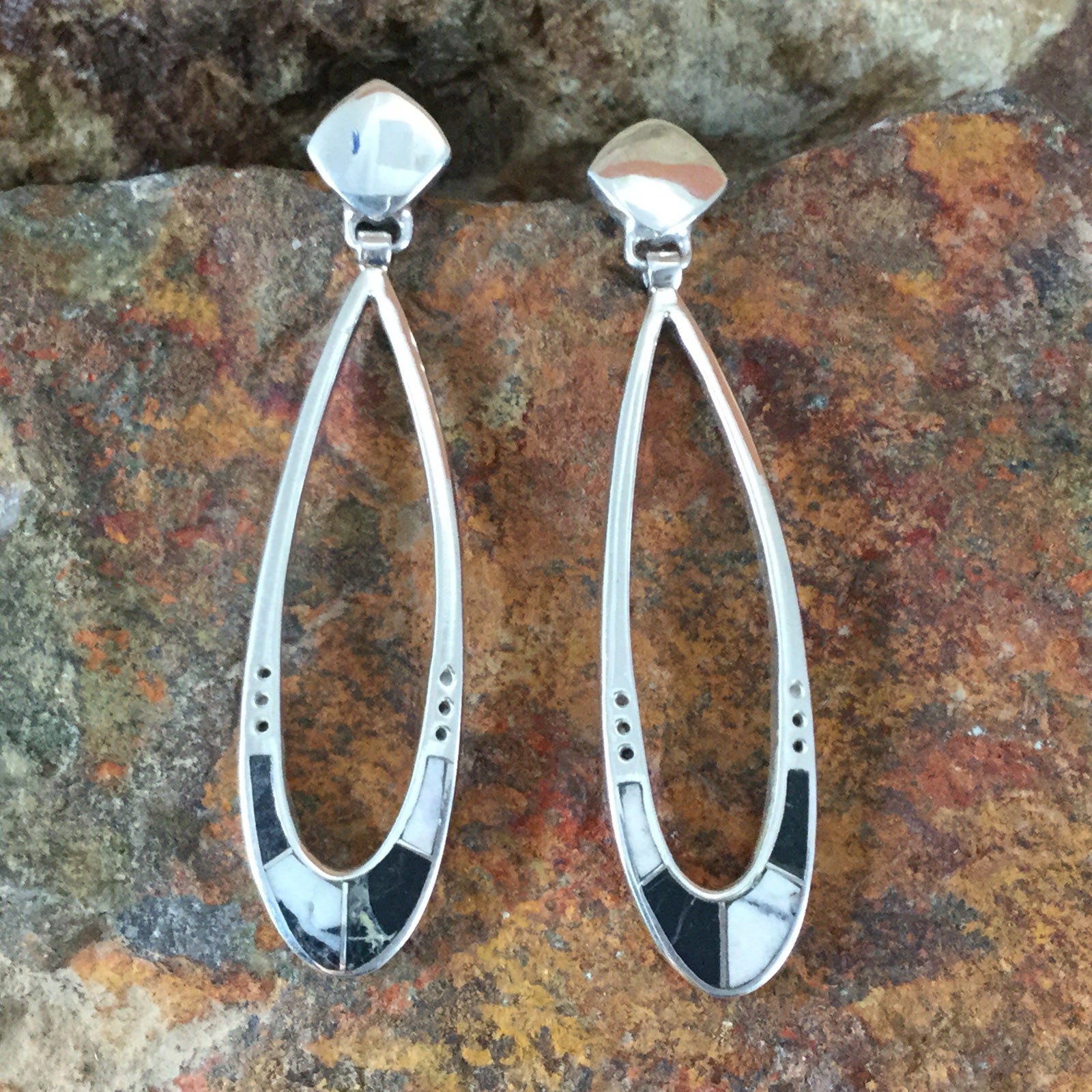 David Rosales White Buffalo Inlaid Sterling Silver Earrings