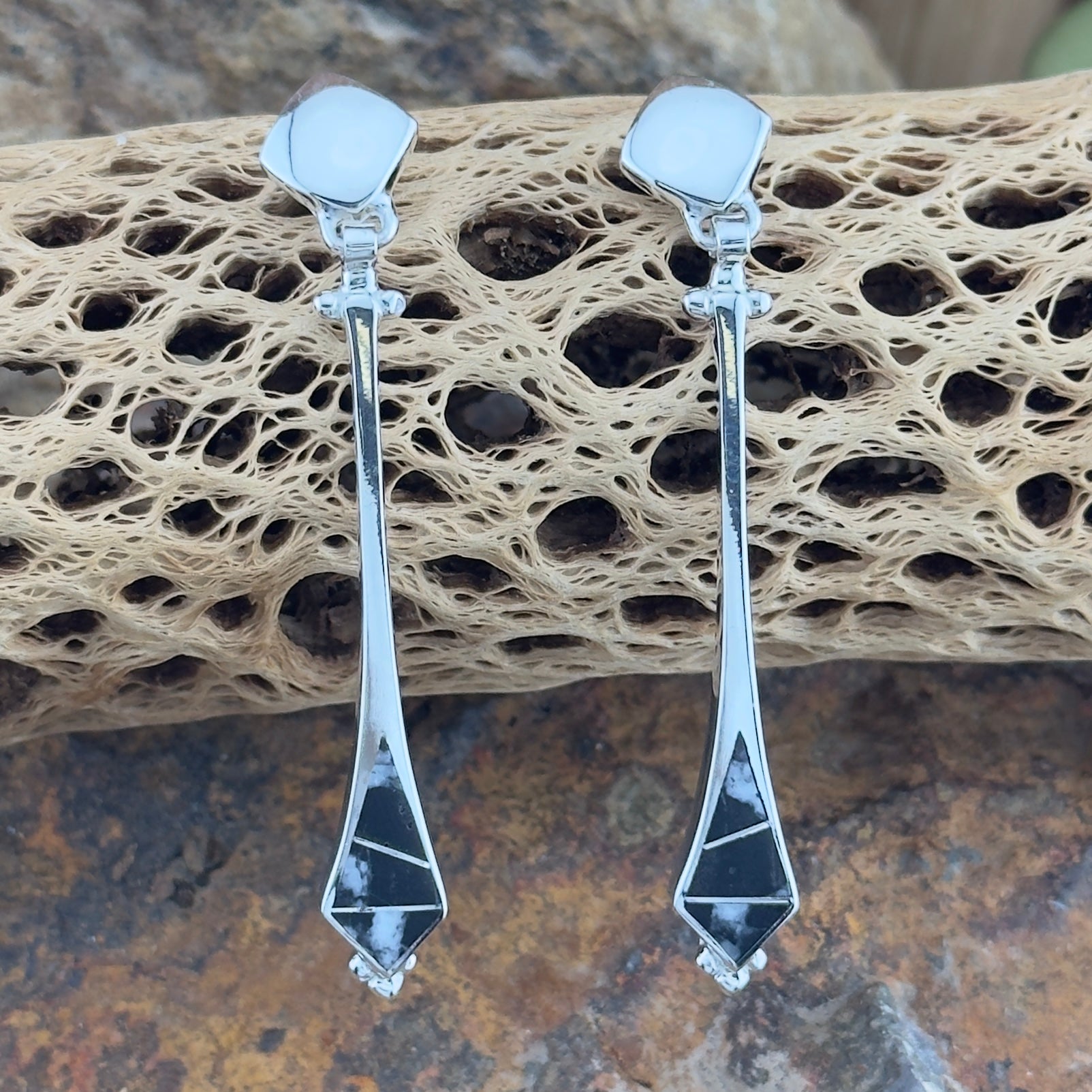 David Rosales White Buffalo Inlaid Sterling Silver Earrings
