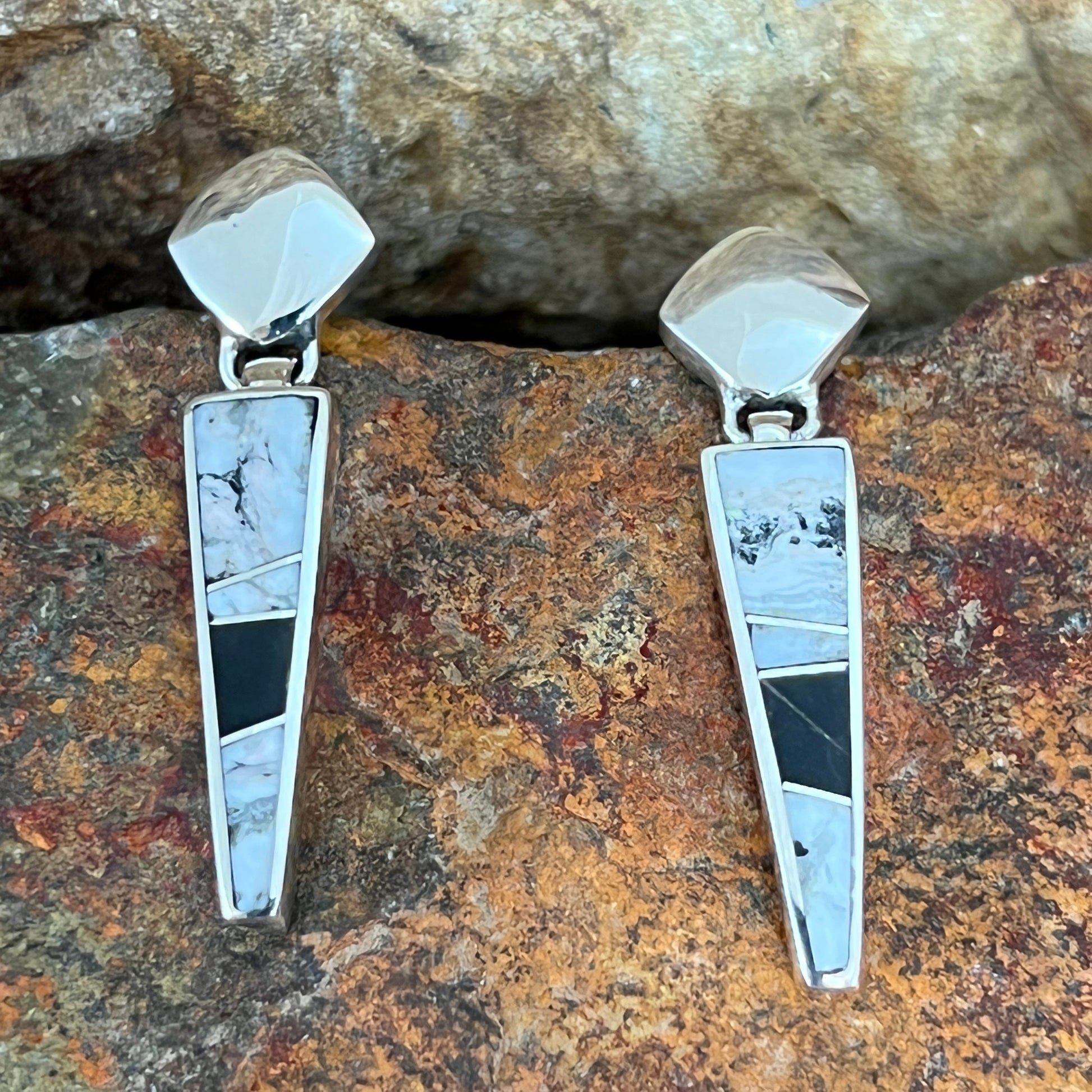 David Rosales White Buffalo Inlaid Sterling Silver Earrings