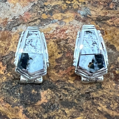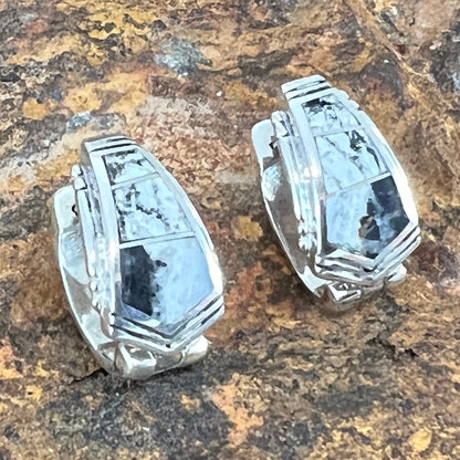 David Rosales White Buffalo Inlaid Sterling Silver Earrings Huggies