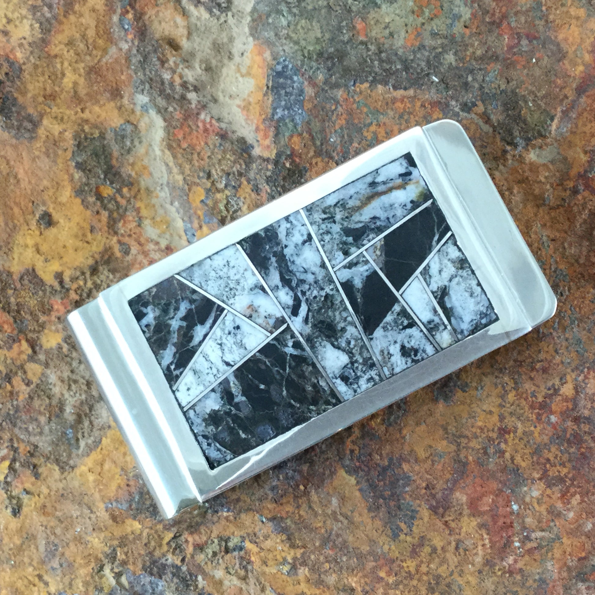 David Rosales White Buffalo Inlaid Sterling Silver Money Clip
