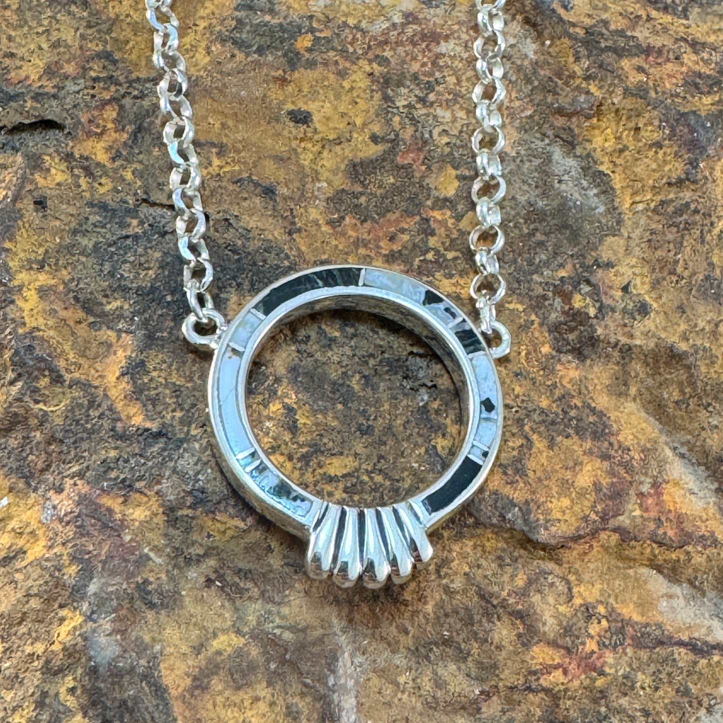 David Rosales White Buffalo Inlaid Sterling Silver Necklace
