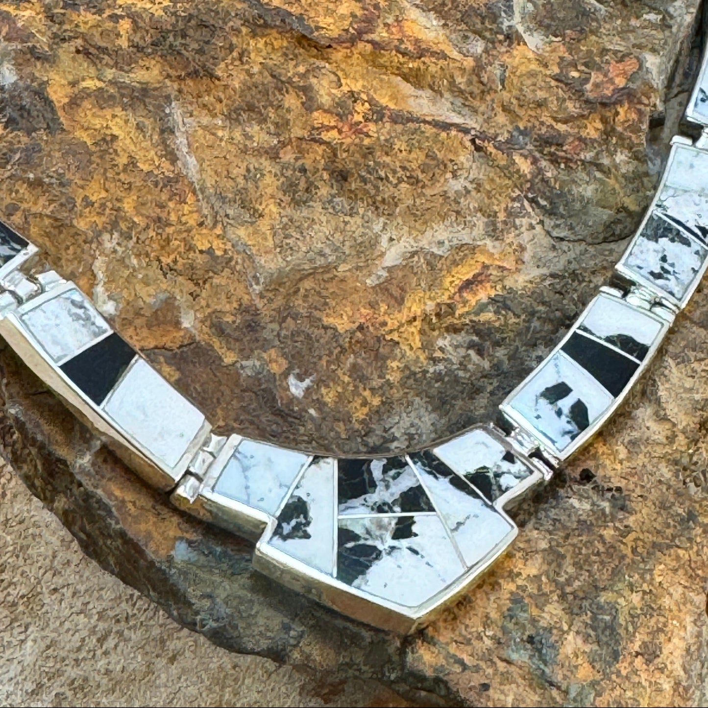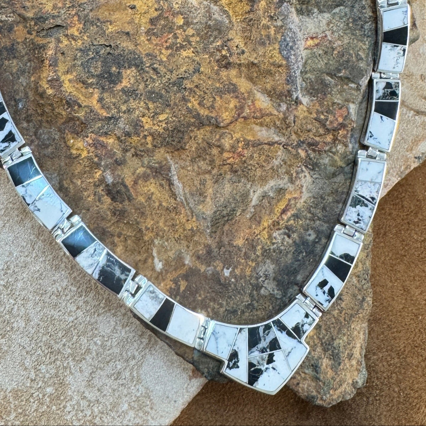 David Rosales White Buffalo Inlaid Sterling Silver Necklace
