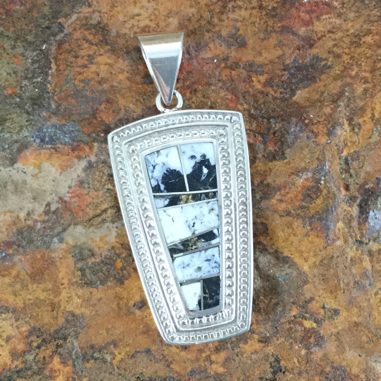 David Rosales White Buffalo Inlaid Sterling Silver Pendant