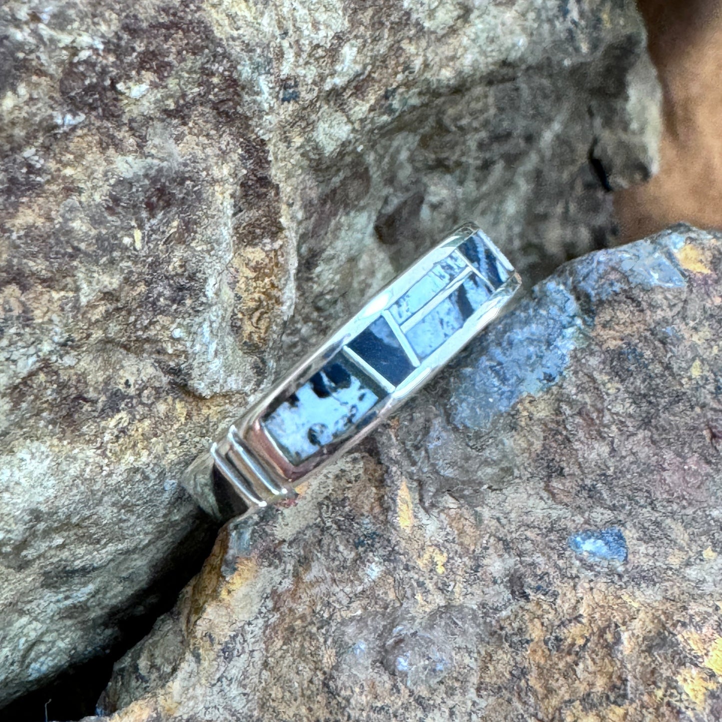 David Rosales White Buffalo Inlaid Sterling Silver Ring