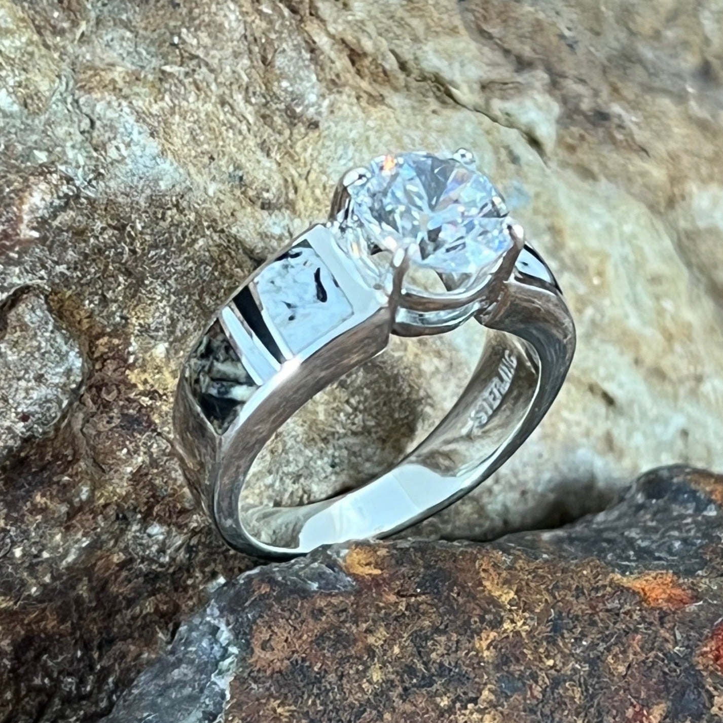 David Rosales White Buffalo Inlaid Sterling Silver Ring Cubic Zirconia