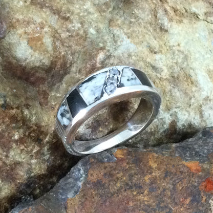 David Rosales White Buffalo Inlaid Sterling Silver Ring Cubic Zirconia