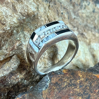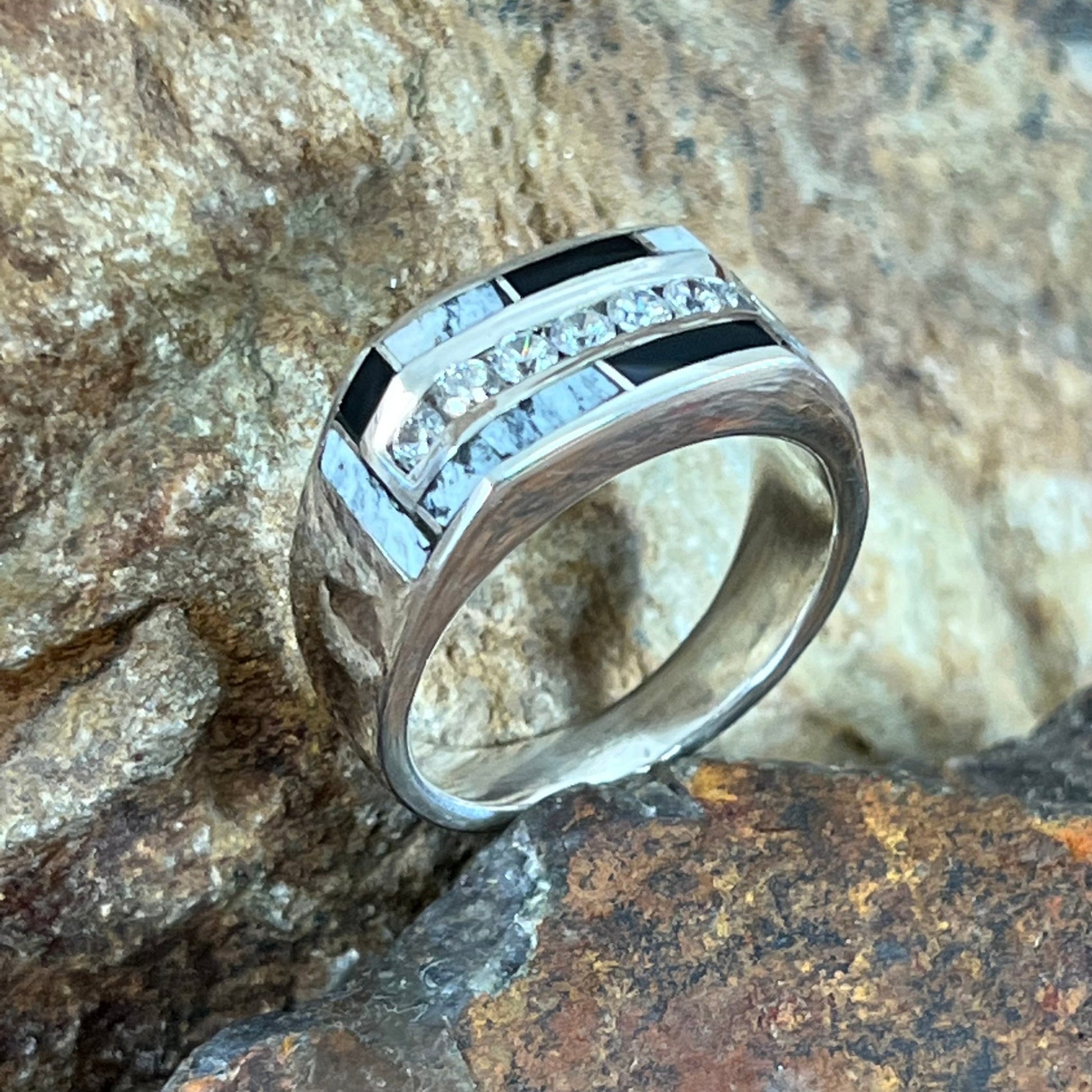 David Rosales White Buffalo Inlaid Sterling Silver Ring w/ Cubic Zirconia