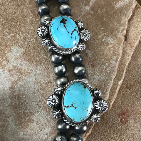 - Each Silver Setting is strung on a Double Strand of Handcrafted Sterling Silver Navajo Pearls 8 mm in diameter.