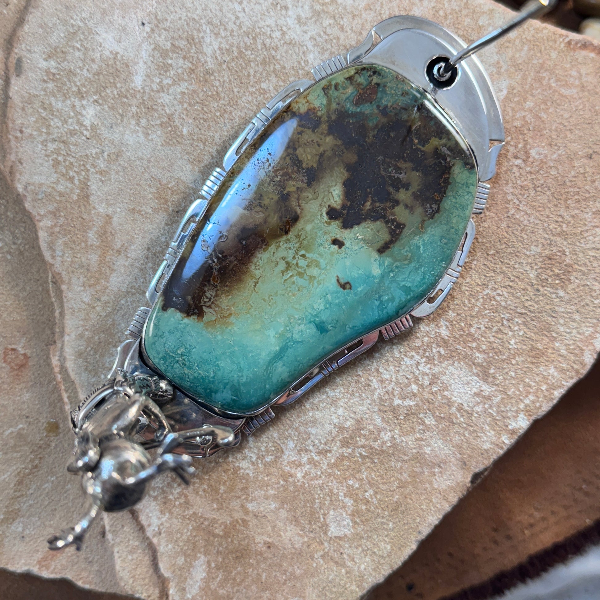 - Stone: Natural turquoise base (likely Kingman, possibly Morenci or a similar Arizona mine)