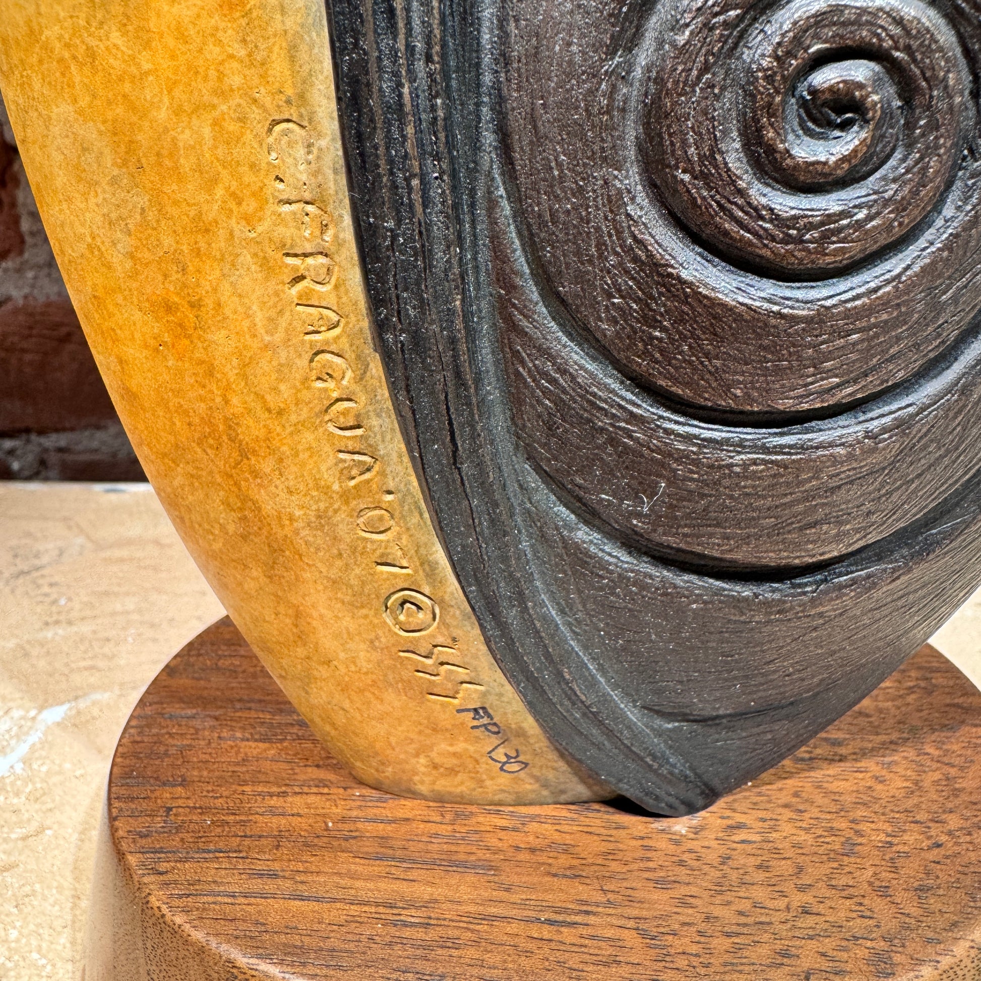 Fragua studied at the Institute of American Indian Arts in Santa Fe and the San Francisco Art Institute, later refining his craft in Pietrasanta, Italy. His work bridges traditional Pueblo themes with modern sculptural form, creating pieces that are both grounded in heritage and elevated by contemporary artistry.