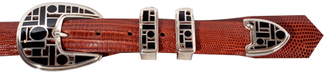 This stunning Ranger Belt Buckle Set is handcrafted in Sterling Silver and inlaid with Black Jade.