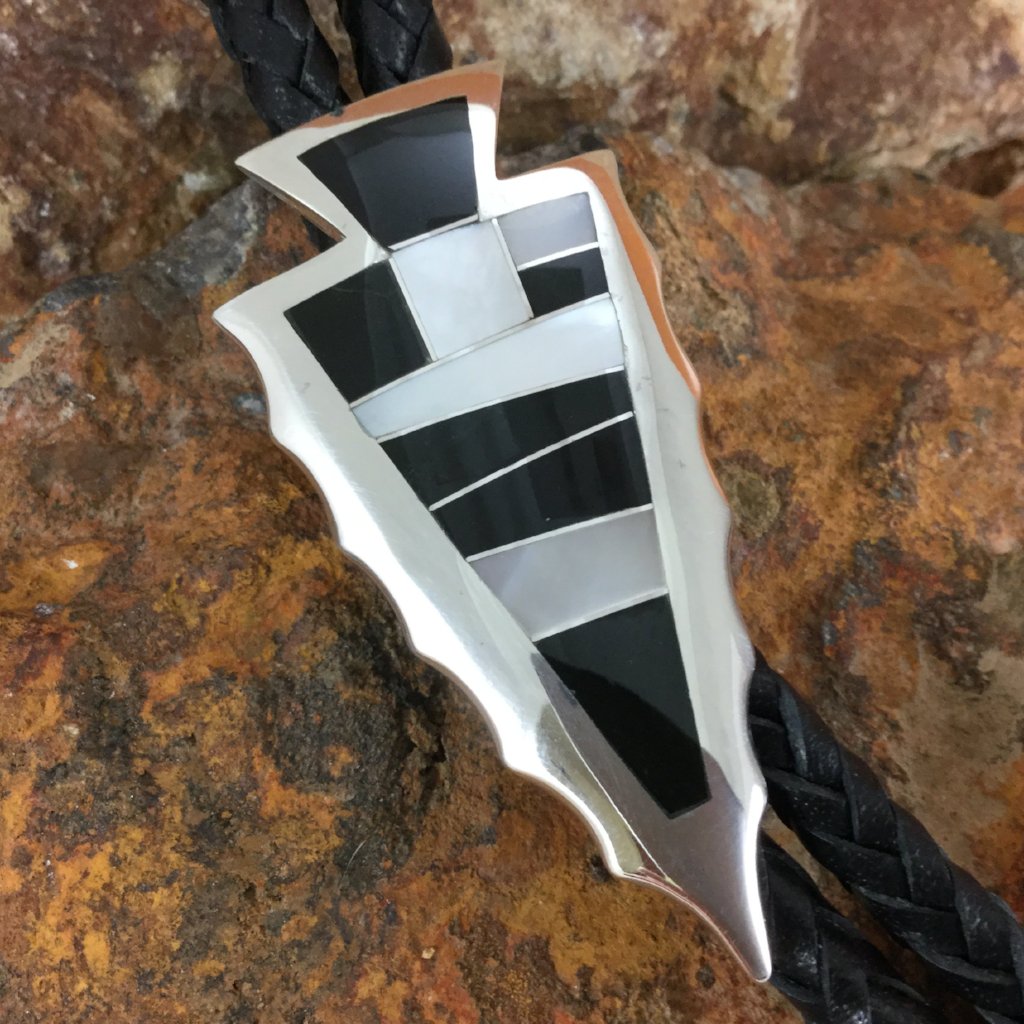 David Rosales Tuxedo Inlaid Sterling Silver Bolo Tie