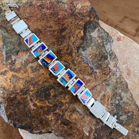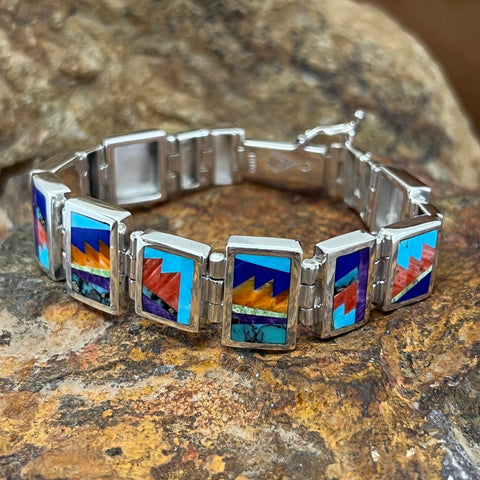 David Rosales Indian Summer Fancy Inlaid Sterling Silver Bracelet