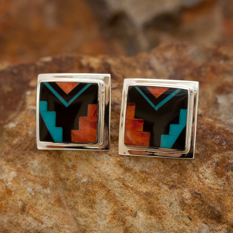 David Rosales Red Canyon Fancy Inlaid Sterling Silver Earrings