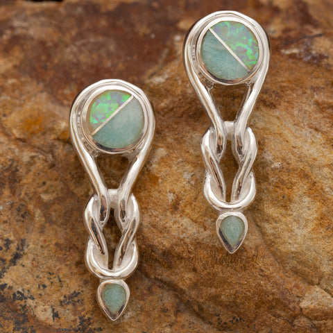 These gorgeous Sterling Silver Earrings, as part of the Amazing Light collection, feature Amazonite and Lab Opal.