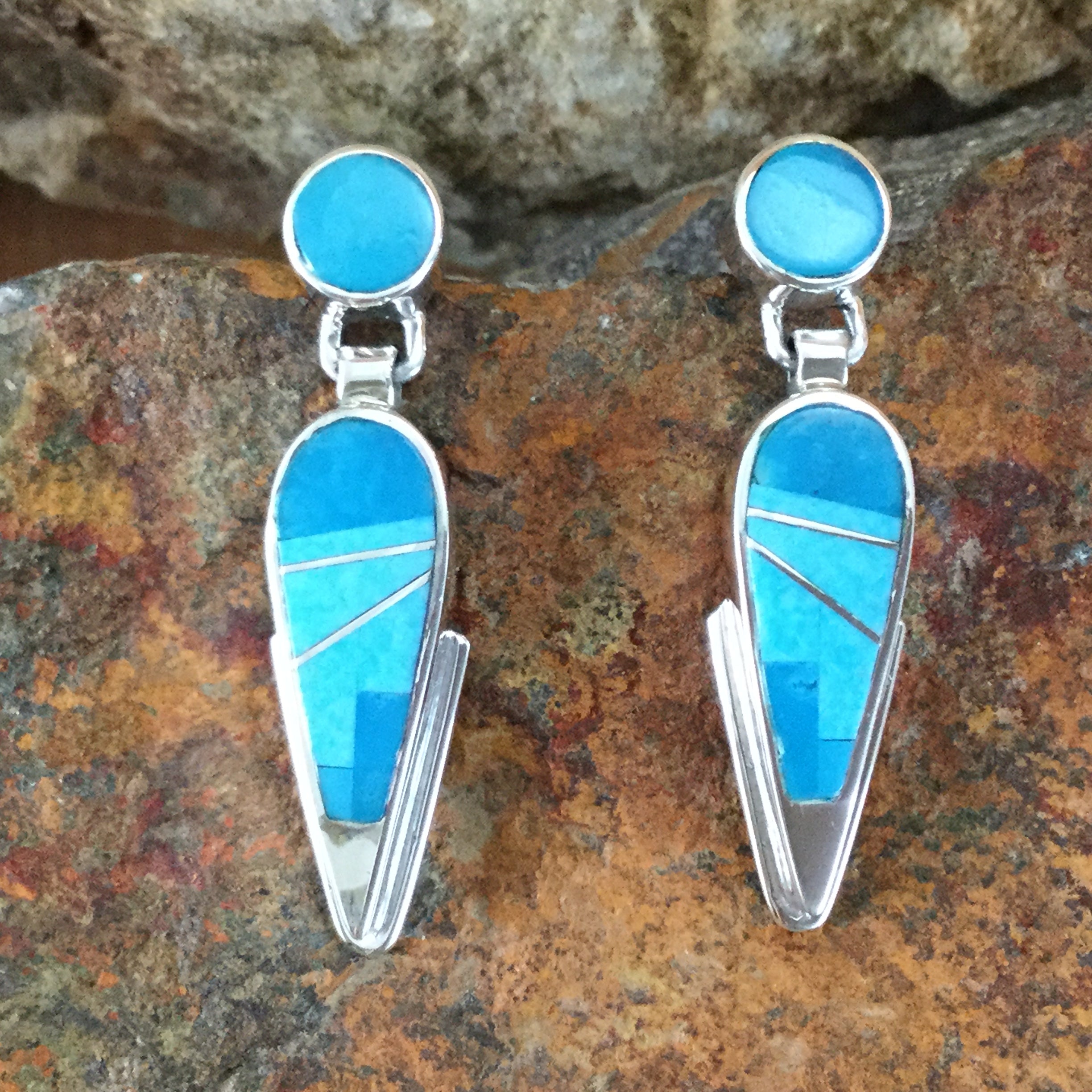 David Rosales Arizona Blue Inlaid Sterling Silver Earrings