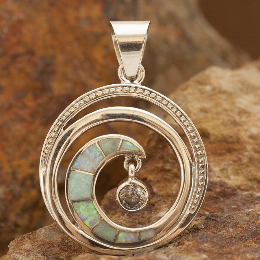 This beautiful Sterling Silver Pendant, as part of the Amazing Light Collection, features Amazonite and Lab Opal with Cubic Zirconia.