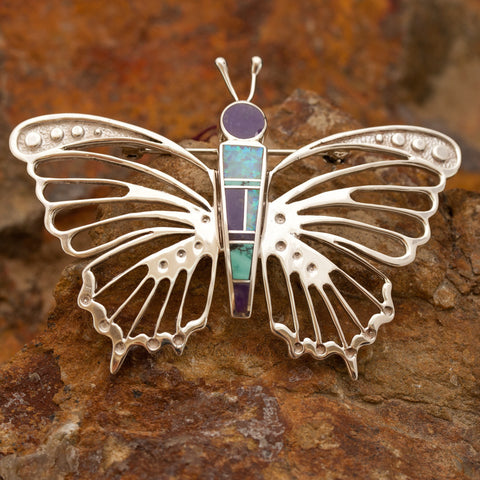 David Rosales Shalako Inlaid Sterling Silver Pendant/Pin Butterfly
