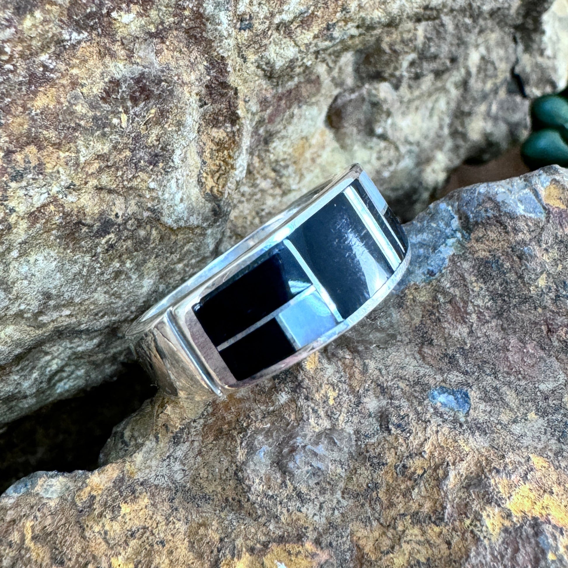 David Rosales Tuxedo Inlaid Sterling Silver Ring