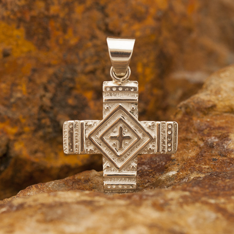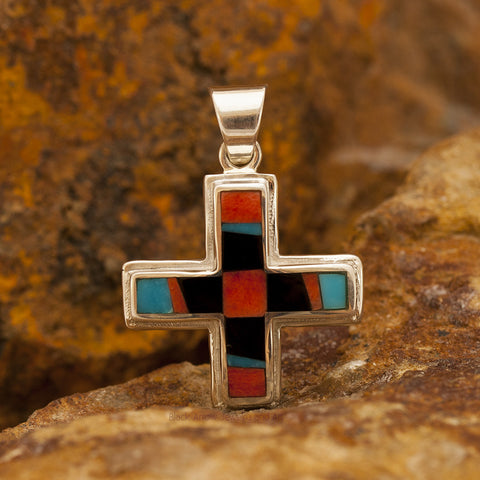 David Rosales Red Canyon Inlaid Sterling Silver Pendant Two-Sided Cross