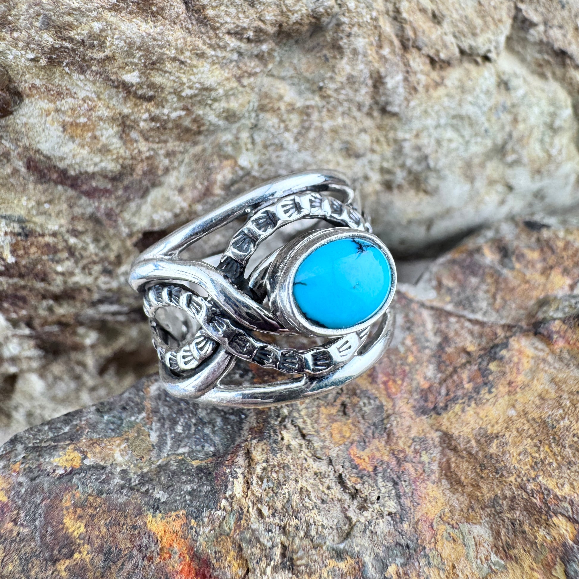 Kingman Turquoise Sterling Silver Ring by Ray Coriz - Size 8 1/2
