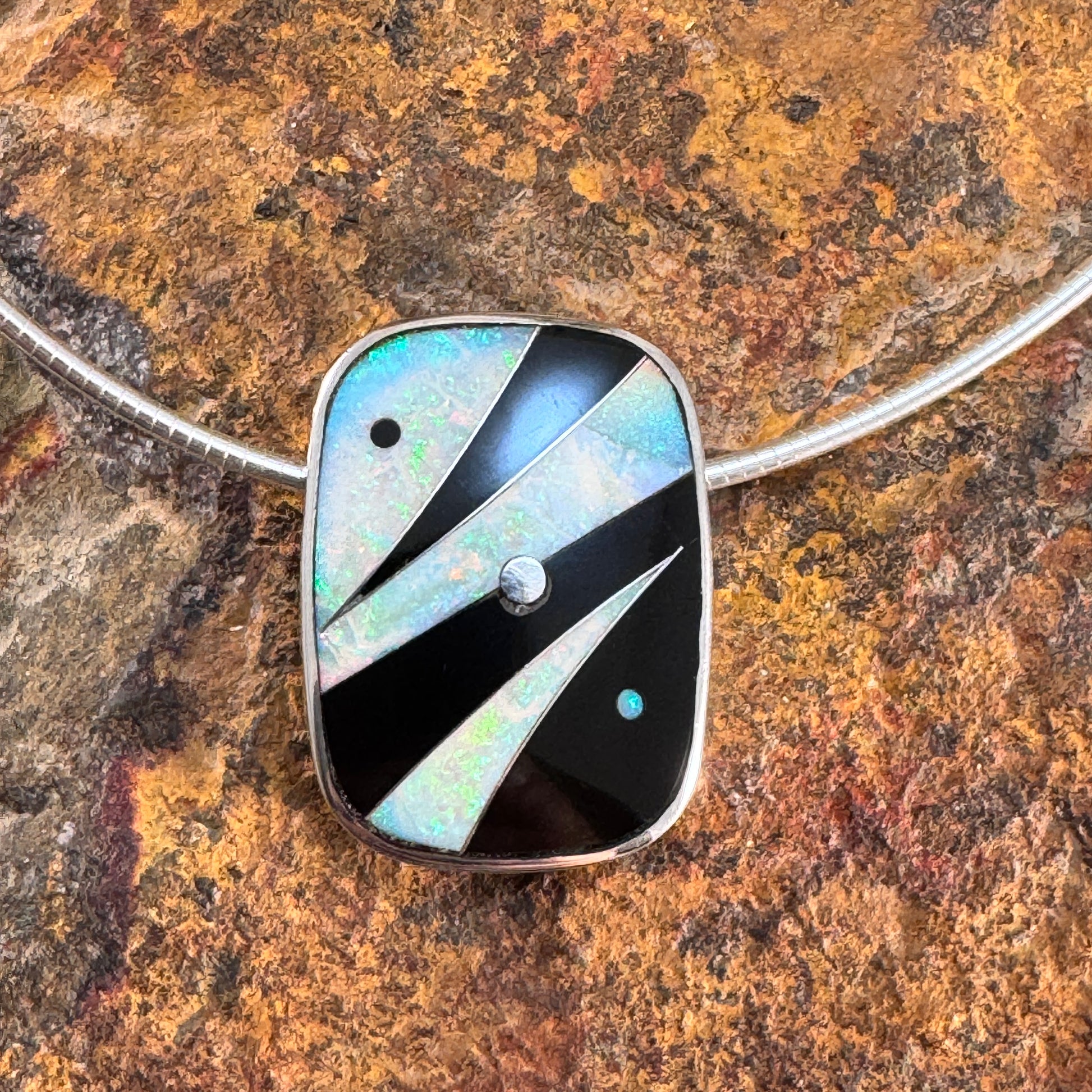 Lightning Inlay Pendant by GL Miller – Black Jade & Lab Opal - Estate