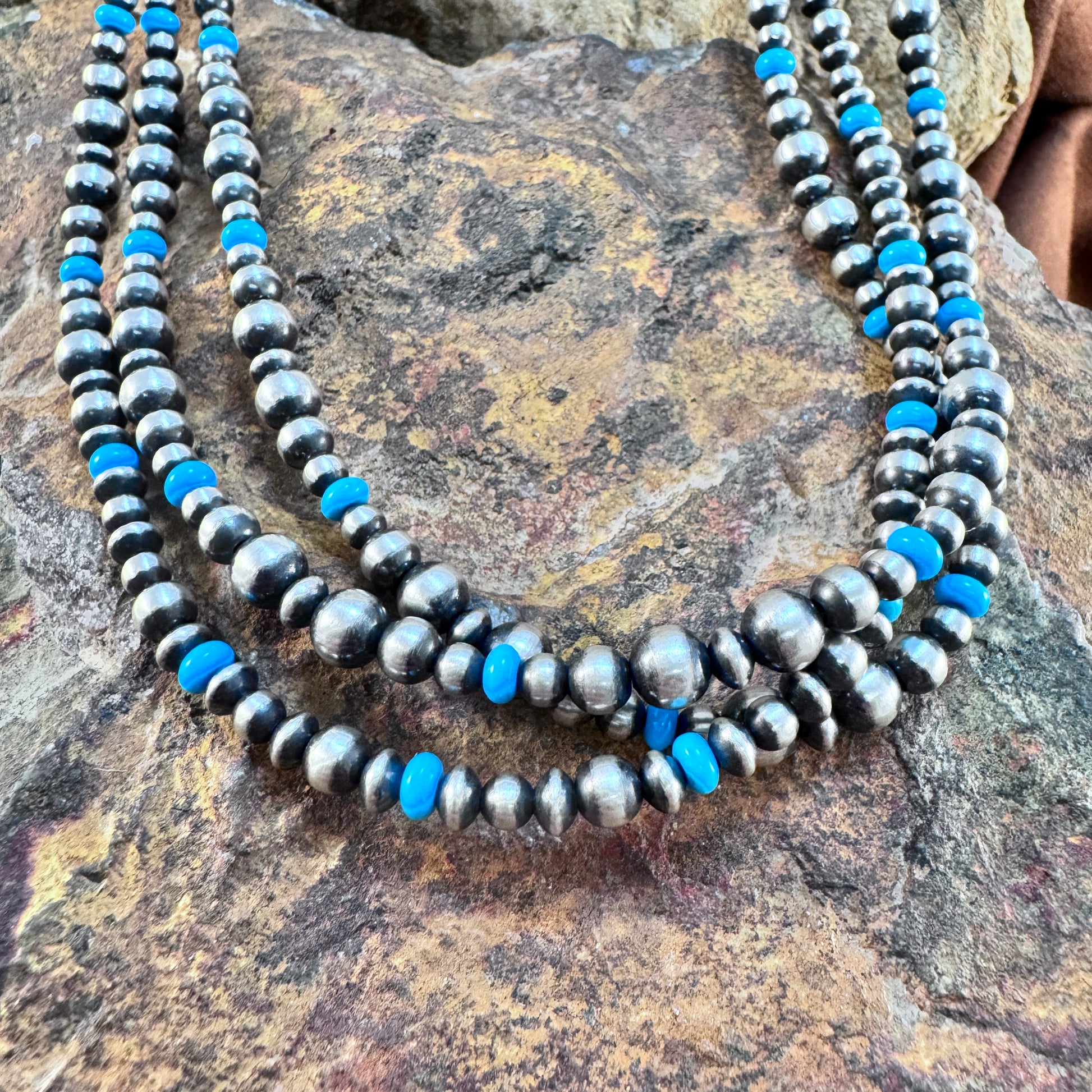 Ask a question about Navajo Pearls - 3-Strand Sterling Silver & Turquoise Bead Necklace