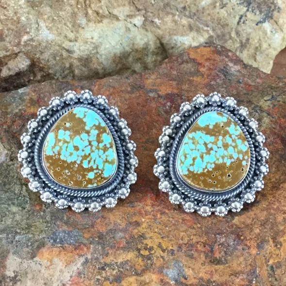 Number 8 Turquoise Sterling Silver Earrings by Readda Begay