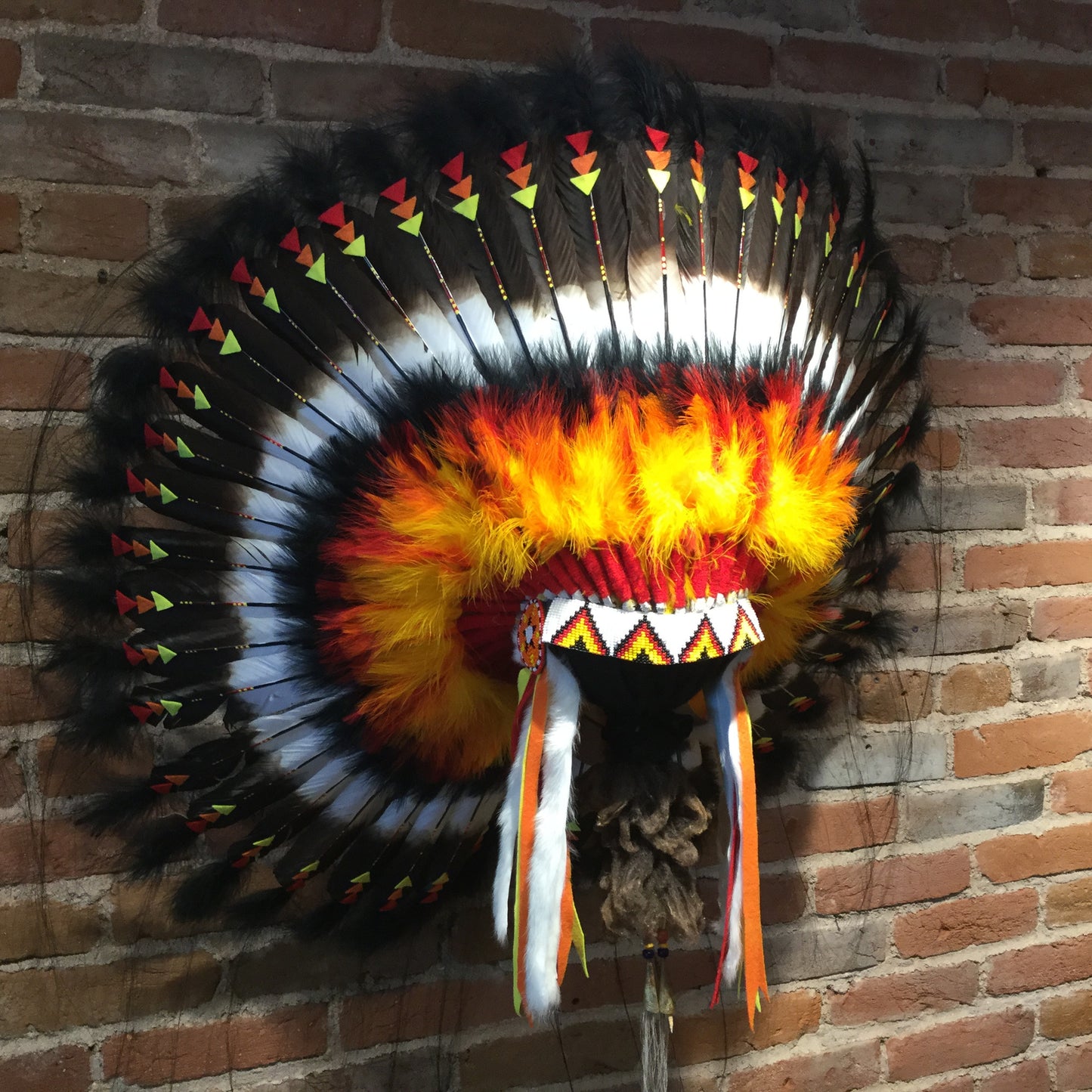 Each headdress we offer is handcrafted with care, guided by traditional designs and the artist’s interpretation of color, balance, and cultural symbolism. These pieces are created to honor the tribes they represent—not as costumes, but as respectful replicas suitable for ceremonial use or meaningful home display. Colors may appear differently depending on your screen settings; if the item is in stock, the photo reflects the exact piece you will receive. If out of stock, images are for reference only and new pieces may vary slightly in pattern or hue. While we do our best to accommodate special requests, changes can only be made using materials and colors already available in our current builds—custom-painted features or themed alterations (e.g., school or wedding colors) are not available. If you would like to pursue a design that blends color and style to match your intended use based on an existing piece, a 50% up-charge will apply to the listed price. Our goal is to respectfully represent the sacred meaning behind these works and to preserve their cultural integrity.