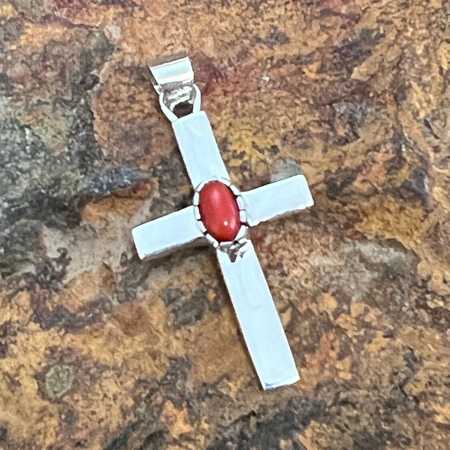 Red Coral Sterling Silver Pendant Cross by Billy Jaramillo