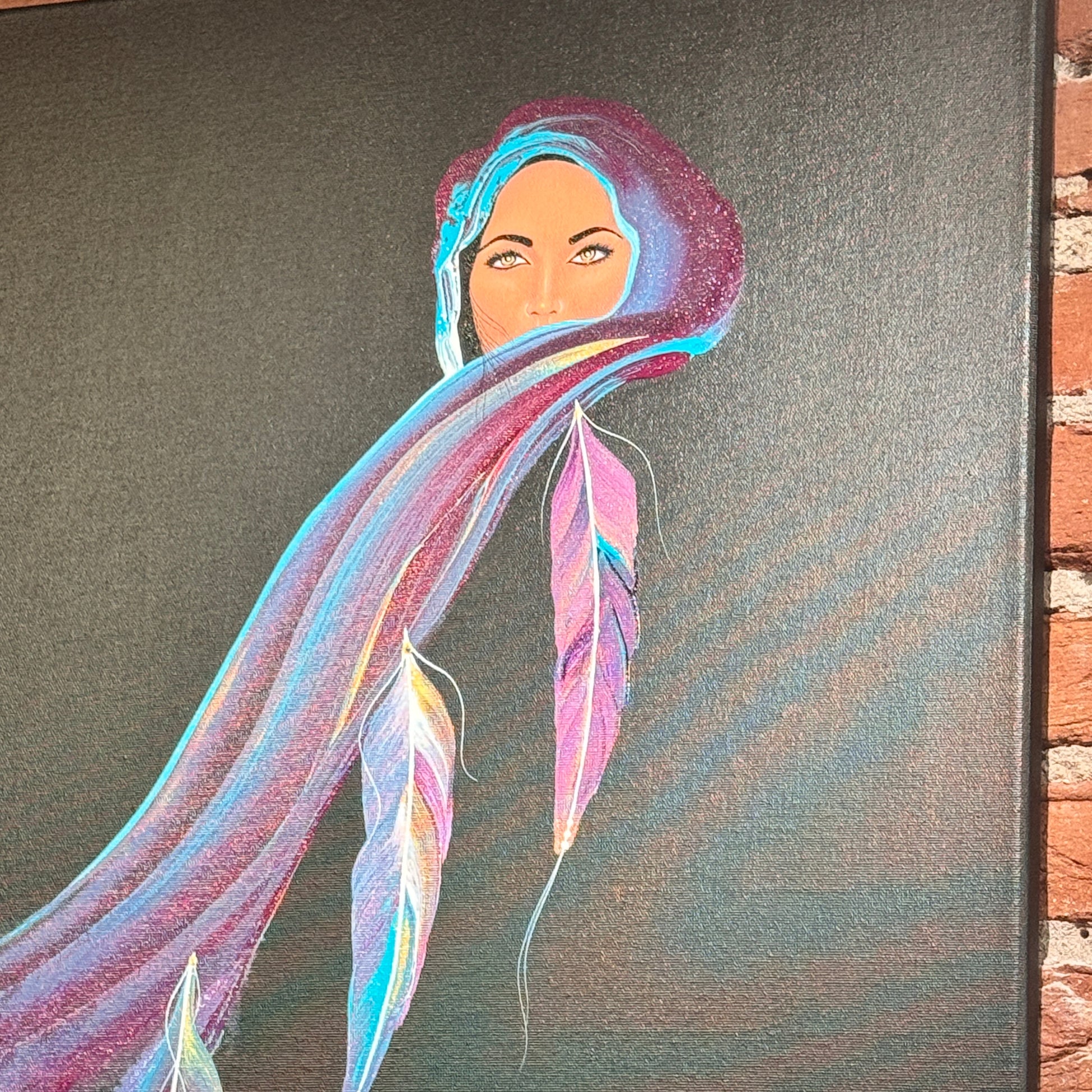 Traci’s work bridges traditional Cherokee heritage with modern expression, often highlighting themes of resilience, feminine power, and connection to the natural world. Her paintings have been exhibited nationally and are cherished by collectors who value both their beauty and their story.