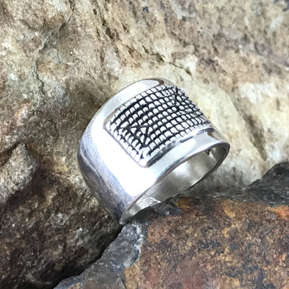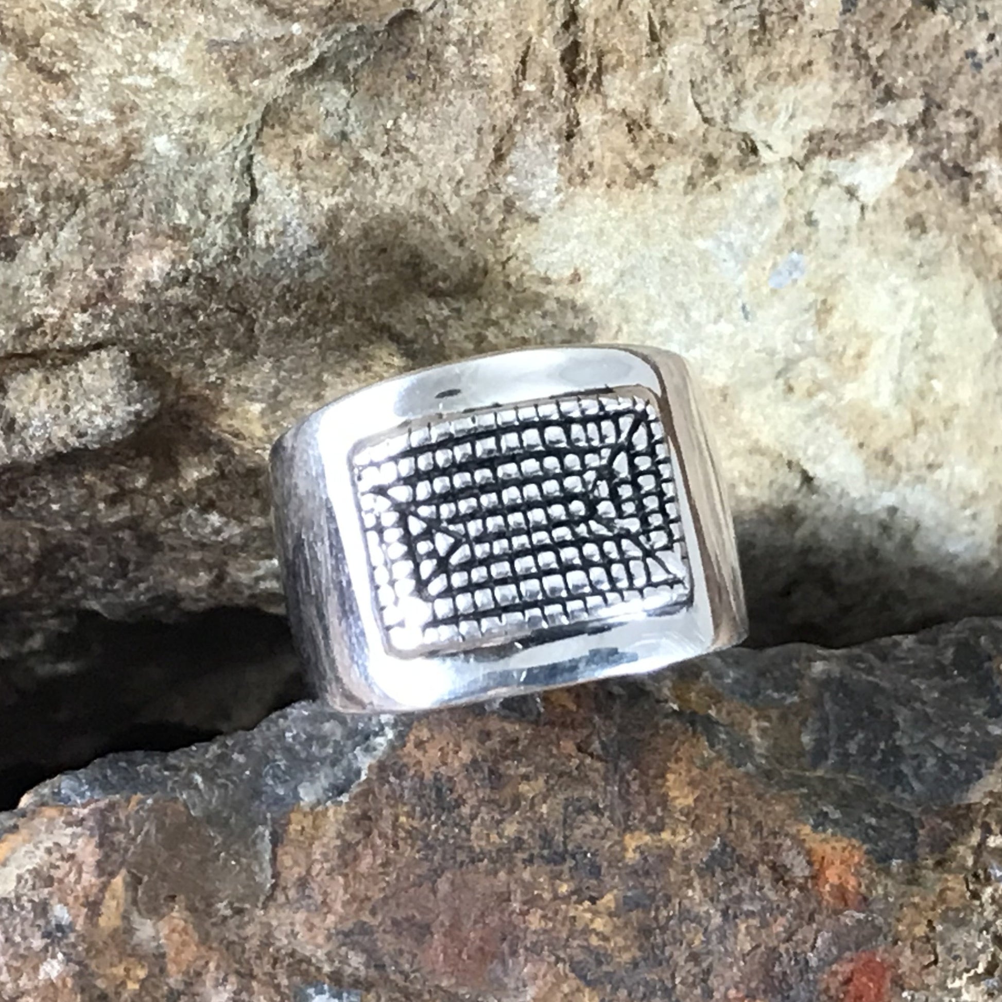 This beautifully designed Sterling Silver Ring is hand crafted by Navajo Artist Elgin Tom