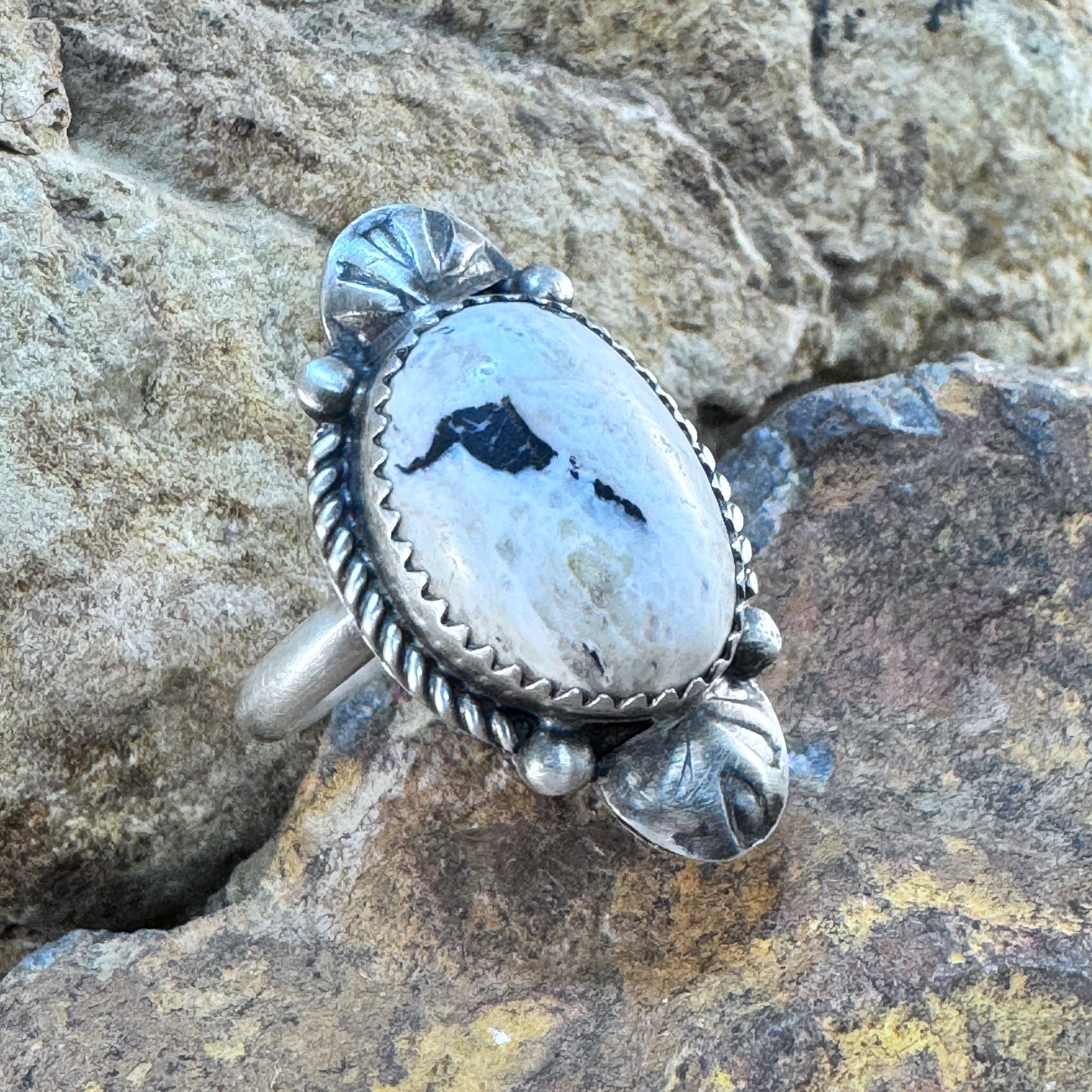 Ask a question about White Buffalo Ring with Fan Accents by Mary Tso